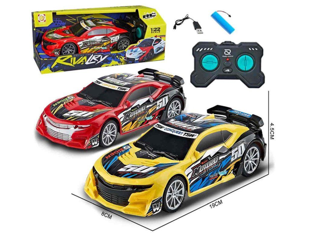 RC Športové auto 1:22 po zapnutí jazdí dopredu, dozadu, doľava a doprava. Auto vyžaduje 3ks 1,5V batérií typu AA, ktoré nie sú súčasťou balenia. Ovládač vyžaduje 2ks 1,5V batérií typu AA, ktoré tiež nie sú súčasťou balenia. Možnosť výberu z dvoch farieb - žlté alebo červené. Nevhodné pre deti do 3 rokov. Rozmer - 19 x 8 x 4,5cm